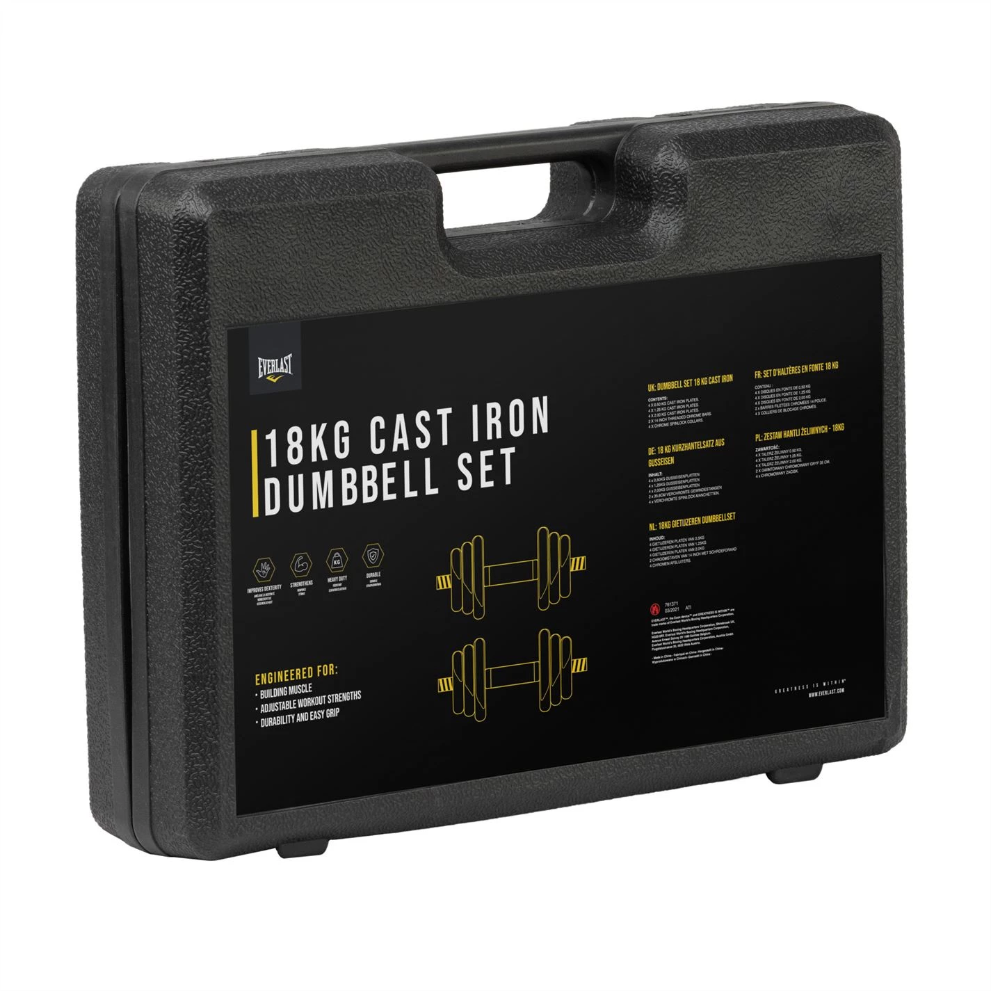 The Everlast 18KG Dumbbell Set will help kick start any home gym setup these weights are ideal for building arm muscle strength. Perfect for light home workouts.
